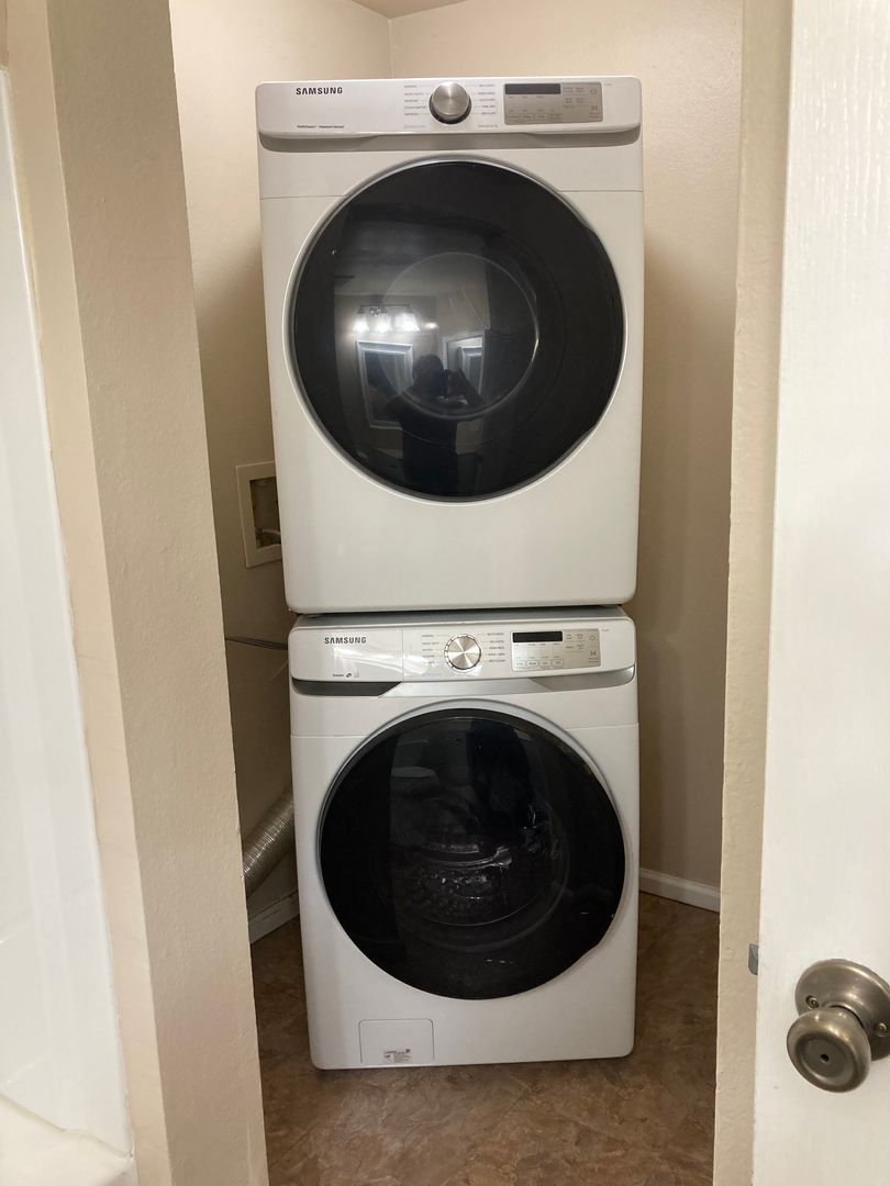 A washer and dryer in-unit make laundry day a breeze.