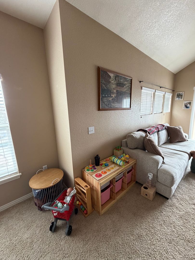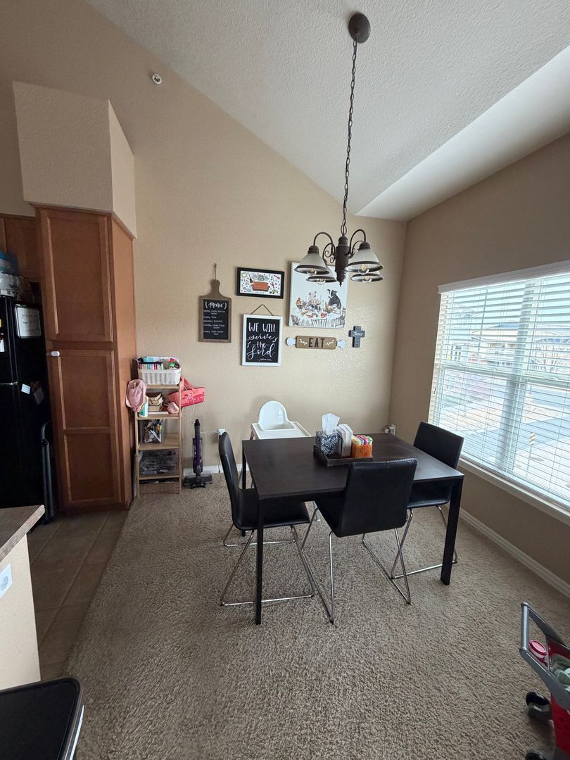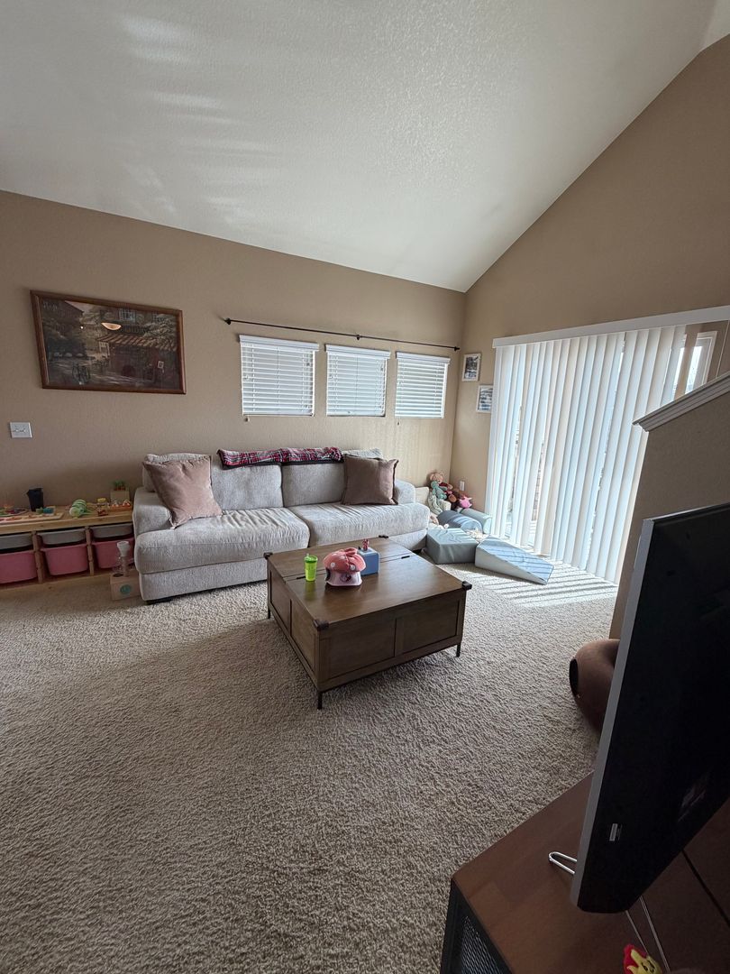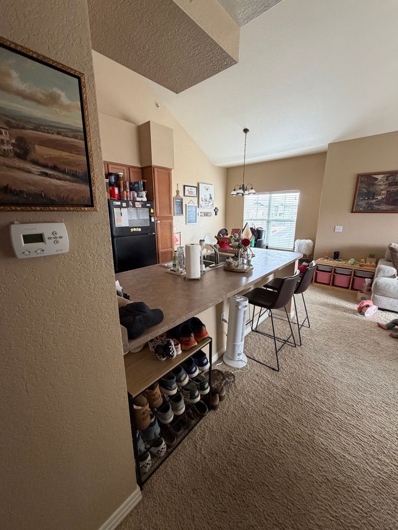 Open floor plan with lots to offer! This home has vaulted ceilings, modern decor, and tons of windows. The kitchen is lovely and has a breakfast bar! The main floor is rounded out by a generous sized family room and nice eating space.